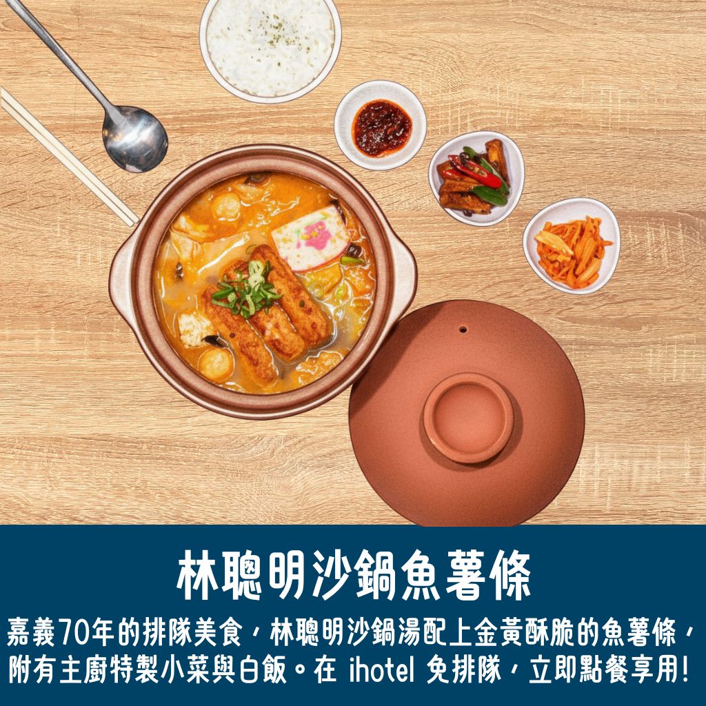 在桃園也可以吃到林聰明沙鍋魚頭!? i hotel 中壢館將於2026/3/1起, 正式與嘉義傳承三代、橫掃饕客圈的 70 年名店【林聰明沙鍋魚頭】展開跨界聯名! 這次,我們把嘉義排隊神話直接搬進您的專屬電競包廂。 不用舟車勞頓,更無需在烈日下苦等,只需輕點螢幕,即刻熱騰騰送達!